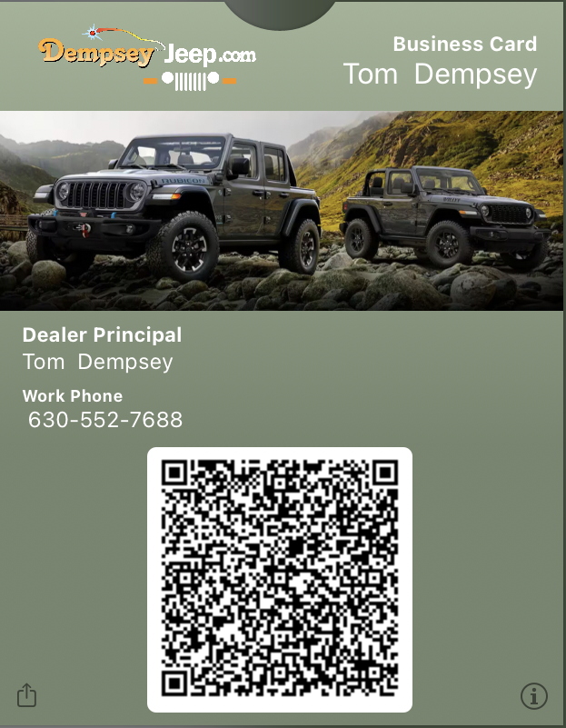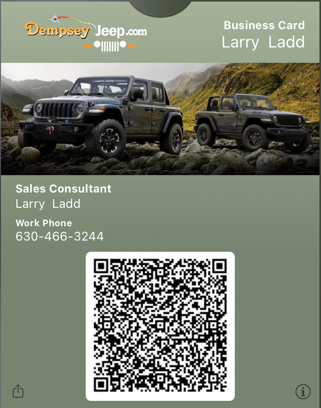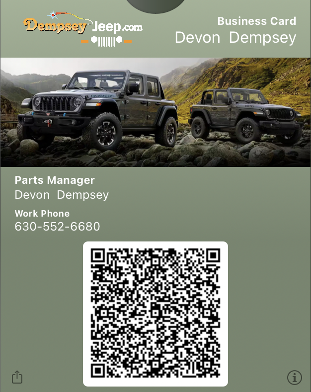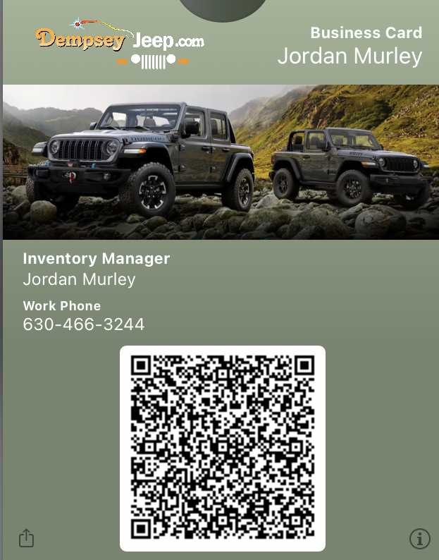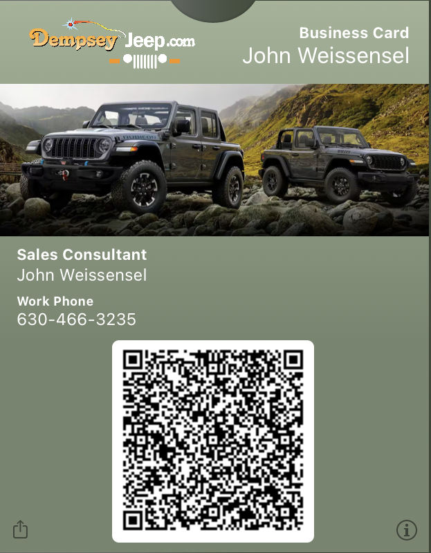 Simply click on a staff member to save them to your mobile wallet. This also gives you access to Special Deals and Incentives for Sales, Service, and Parts!